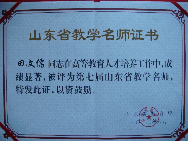 8. 2005年《动物繁殖学》课程建设探讨,获山东省高等教育教学成果三等奖(第二名)。