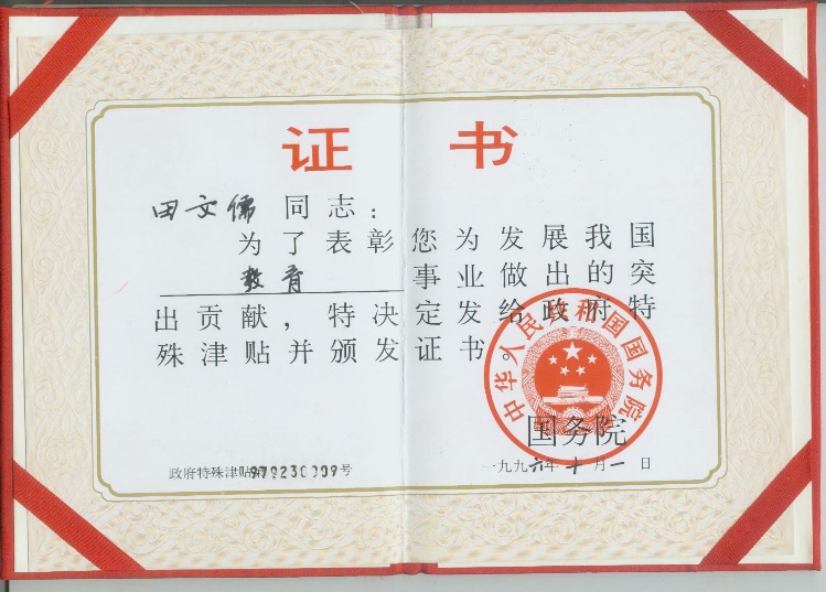 2. 1996年获中国畜牧兽医学会荣誉奖(Honour Prize by Chinese Association of Animal Science and Veterinary Medicine, 1936~1996)