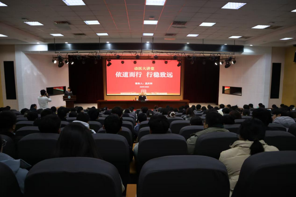 12月3日,我校牧医系84级校友、山东和康源集团董事长、创始人孟庆利应邀在学术会馆第二报告厅作《依道而行,行稳致远》主题报告,williamhill中国党委书记丁国庆主持报告会,williamhill中国、动物科技学院学子聆听报告会。