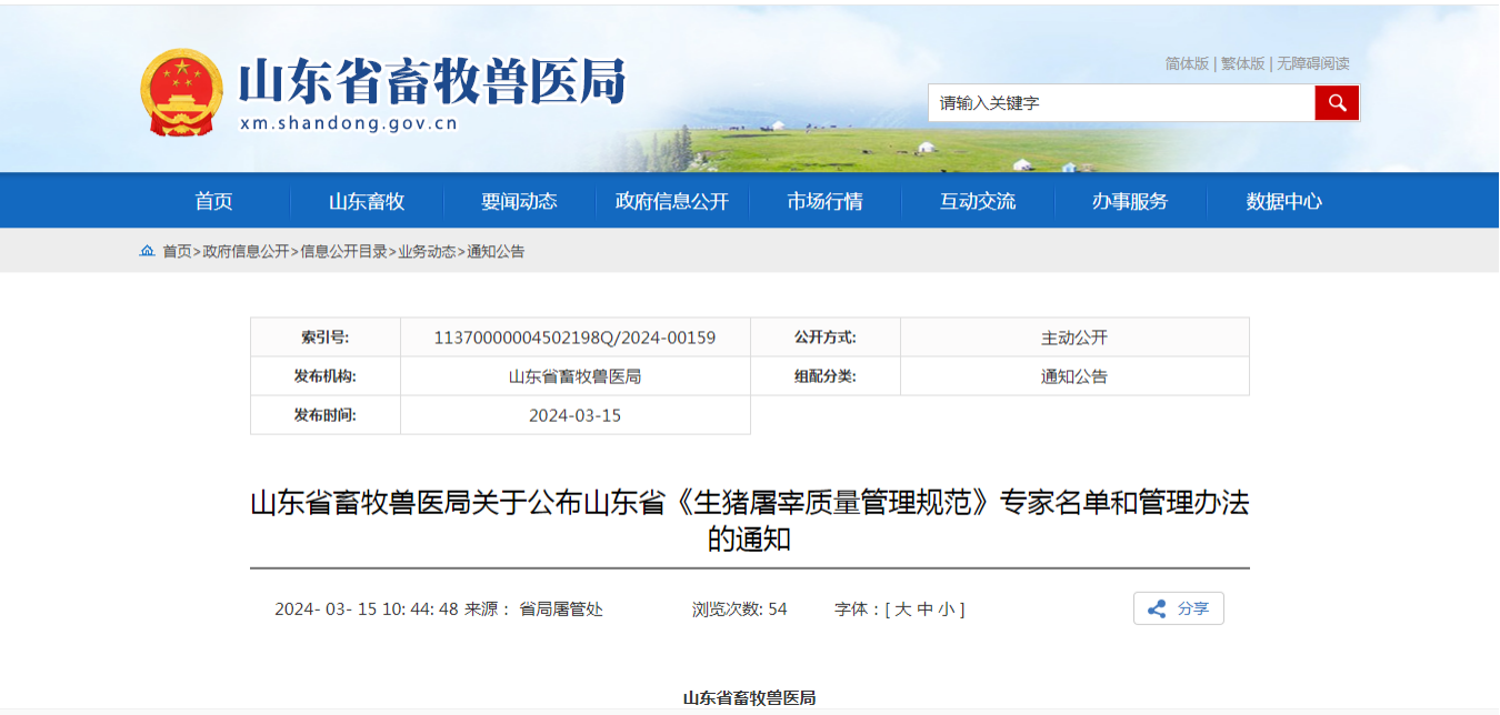 3月15日,山东省畜牧兽医局发布关于公布山东省《生猪屠宰质量管理规范》专家名单和管理办法的通知,我校山东省生猪产业技术体系疫病控制岗位专家黄娟副教授及其团队成员马清霞副教授被确定为山东省《生猪屠宰质量管理规范》专家。
