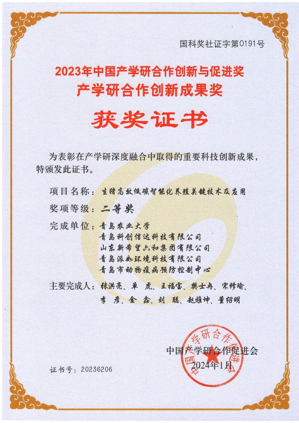 3月17日,由中国产学研合作促进会主办的第十五届中国产学研合作创新大会在北京召开。本届大会以“产学研聚焦:新动能 新模式 新产业”为主题。大会表彰了2023年在产学研深度融合等方面作出贡献的先进单位和个人,由williamhill中国张洪亮老师主持完成的“生猪高效低碳智能化养殖关键技术及应用”成果荣获“2023年中国产学研合作创新成果奖二等奖”。