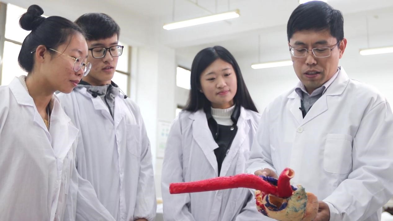 教学工作中,李老师更是认真严谨,对待问题一丝不苟,注重的是学生在课堂上是否能真正有所收获。近几年在学校和学院领导的支持下,实验室新购置了牛、马、羊等塑化标本、三维扫描仪和3D打印机等仪器设备,教学条件得到不断改善。李老师将这些无毒的塑化标本应用到教学中,让同学们能够更加直观地观察到动物器官结构,从而更加深刻地理解这些知识。在动物解剖标本制作、动物器官三维数据采集等相关研究成果的基础上,李老师利用三维建模、虚拟现实技术等信息技术手段,开发了具有自主知识产权的虚拟仿真实验教学项目。该项目以动物标本为依据,以“虚实结合, 能实不虚”的理念为指导,构建了牛、马、犬等动物消化系统各组成器官的高精度模型,精确还原了各器官的形态结构和相互位置关系,使学生更加直观形象地观察到各器官结构,掌握牛、马、犬等动物消化器官的解剖特征和区别。2018年度,在全国共认定的296项国家级虚拟仿真实验教学项目中,就有李老师的1项,这也是我校首次获批该类项目。