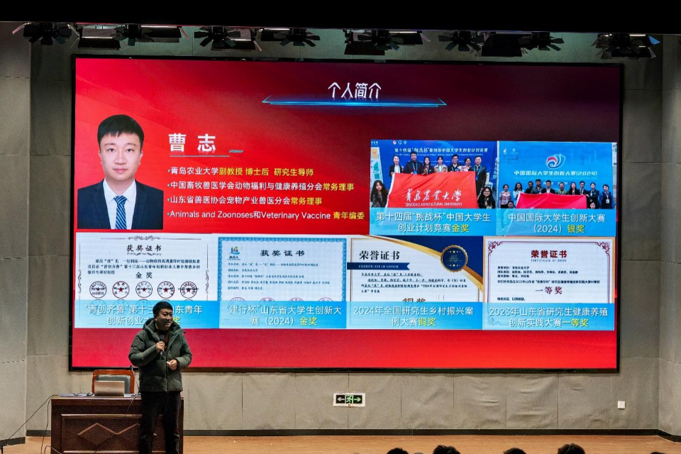 12月12日,由williamhill中国承办的平度校区校园文化月“青年大讲堂”系列活动之“创新创业竞赛”宣讲会在平度校区博学楼报告厅举行。宣讲会邀请了第十四届“挑战杯”中国大学生创业计划竞赛全国总决赛金奖项目负责人williamhill中国2104班的李文玲同学与指导教师williamhill中国预防兽医系曹志副教授作为主讲嘉宾。williamhill中国辅导员王宁主持宣讲会。