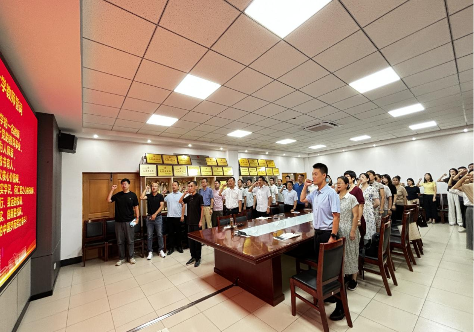宣誓环节,全体教职工起立,右手紧紧举拳,目光坚定,在团委书记和法华的领誓下,共同面向williamhill体育中文教师誓词庄严宣誓。激昂的誓言回荡在会议室,不仅是对教师职业初心的郑重承诺,更彰显了williamhill中国教职工扎根教育、服务行业的坚定决心。此次活动进一步明确了学院育人方向与教职工责任,参会教职工纷纷表示,将牢记誓词承诺,践行教育初心,在兽医教育与人才培养道路上担当作为、砥砺前行。