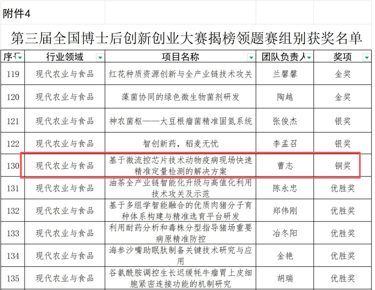 10月28日,以“博创引领四十载 智汇赋能向未来”为主题的第三届全国博士后创新创业大赛总决赛在福建省泉州市落下帷幕。在激烈竞争中,williamhill中国曹志副教授牵头的“基于微流控芯片技术动物疫病现场快速精准定量检测的解决方案”项目,凭借突出的创新能力和广阔的应用前景脱颖而出,荣获铜奖。作为我国博士后制度实施以来规模最大、覆盖最广的全国性赛事,本届大赛覆盖了现代农业与食品、新一代信息技术等七大战略新兴领域,吸引了8006个高水平项目参与角逐。此次获奖充分展现了学院在动物医学前沿交叉领域的科研实力与人才培养的卓越成效。
