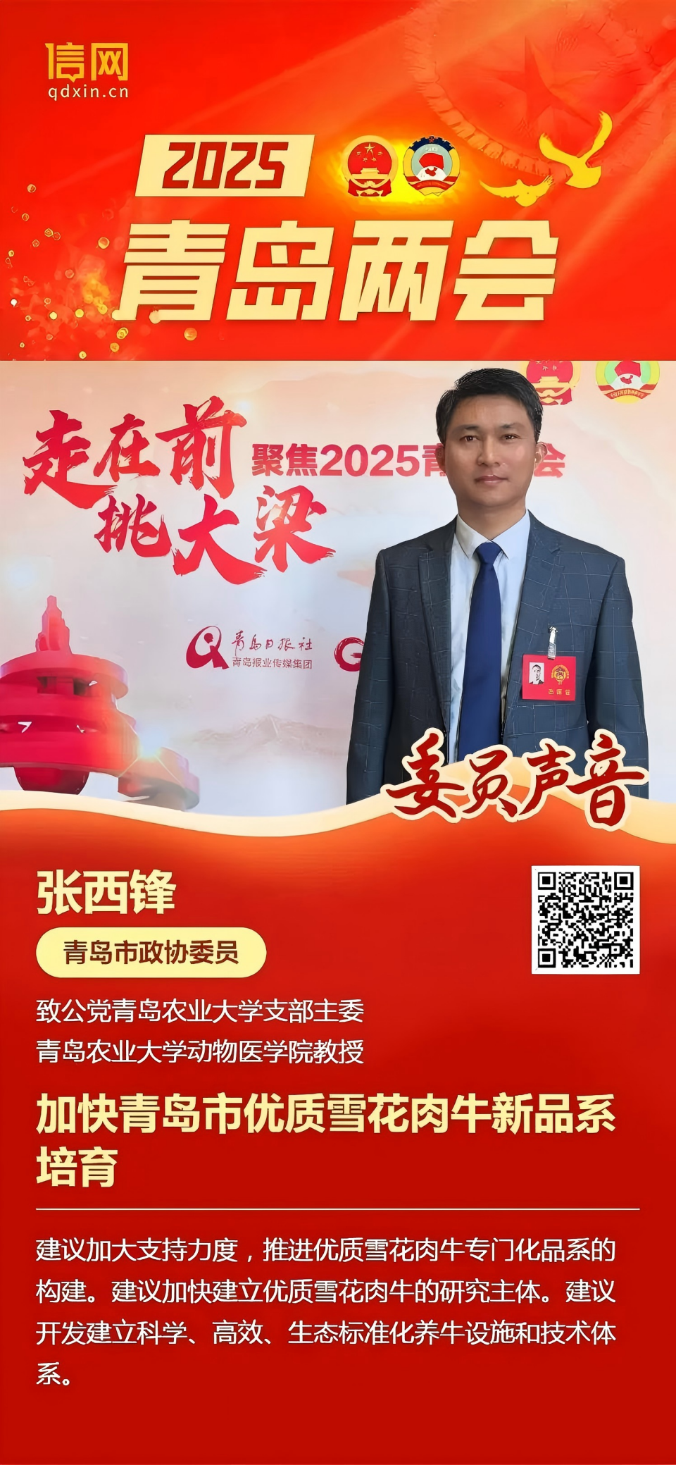 我院张西锋教授团队长期致力于动物种质创新与生物育种研究,先后主持国家自然科学基金、山东省重点研发计划等科研项目20余项,在《Journal of Advanced Research》等国际权威期刊发表SCI论文54篇,获省市各类奖励8项。在青岛市政协第十四届四次会议上,张西锋教授团队以高度的责任感和使命感,精准聚焦肉牛养殖产业关键问题,对推动地方经济发展、保障国家肉类供应安全具有重要意义,此次提案是团队多年科研积淀的实践转化,也是学校服务地方经济发展的重要体现,彰显了高校科研工作者关注国计民生、服务地方经济发展的使命担当。未来,学院将以张西锋教授的提案为契机,进一步加强与政府部门、企业和科研机构的合作,整合优势资源,加大科研攻关力度,持续推动科研成果转化,助力青岛乃至全国肉牛产业打破国外种源垄断,实现从养牛大国向养牛强国的转变,为保障国家肉类供应安全、推动乡村振兴战略实施贡献 “青农力量”。