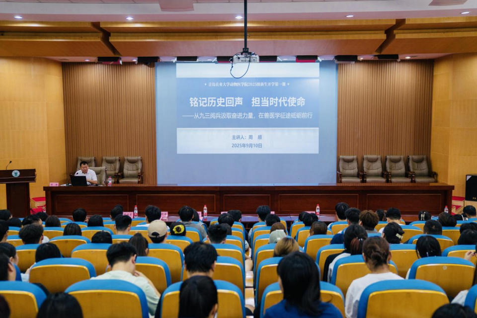 9月10日,williamhill中国院长周顺教授以《铭记历史回声,担当时代使命——从九三阅兵汲取奋进力量,在兽医学征途砥砺前行》为题,为2025级研究生新生带来了一场意义非凡的开学第一课。此次课程在内容选择、环节设置与育人导向层面,充分衔接了学校对“开学第一课”的各项核心要求,内容丰富且富有深度,在引导新生树立正确价值观、明确学习目标等方面发挥了重要作用。