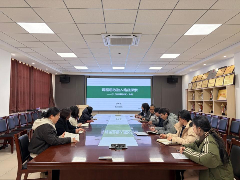 12月10日,基础兽医系组织全体教师开展专题培训。活动以“课程思政融入路径探索——以《家畜解剖学》为例”为主题,由系主任梁晓主持,李方正老师担任主讲。