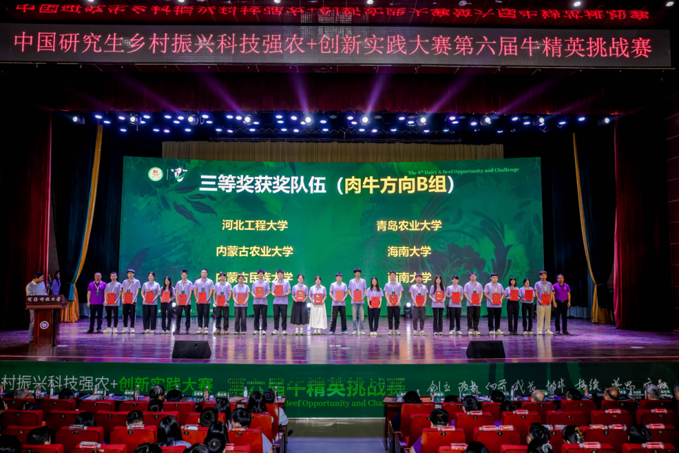 5月16日,由教育部学位管理与研究生教育司指导,中国学位与研究生教育学会、中国科协青少年科技中心共同主办,中国农业大学和河南科技大学承办的“中国研究生创新实践系列大赛”主题赛事之一“中国研究生乡村振兴科技强农+创新实践大赛——第六届牛精英挑战赛(以下简称挑战赛)”在河南洛阳成功举行。williamhill中国首次派出肉牛方向“疫”拍即合队(团队成员:倪洋、韩学淑、徐采琳、刘康;指导教师:迟良、李沛霞)参赛,斩获肉牛队全国三等奖,为学校和学院的荣誉榜单再添亮眼一笔。