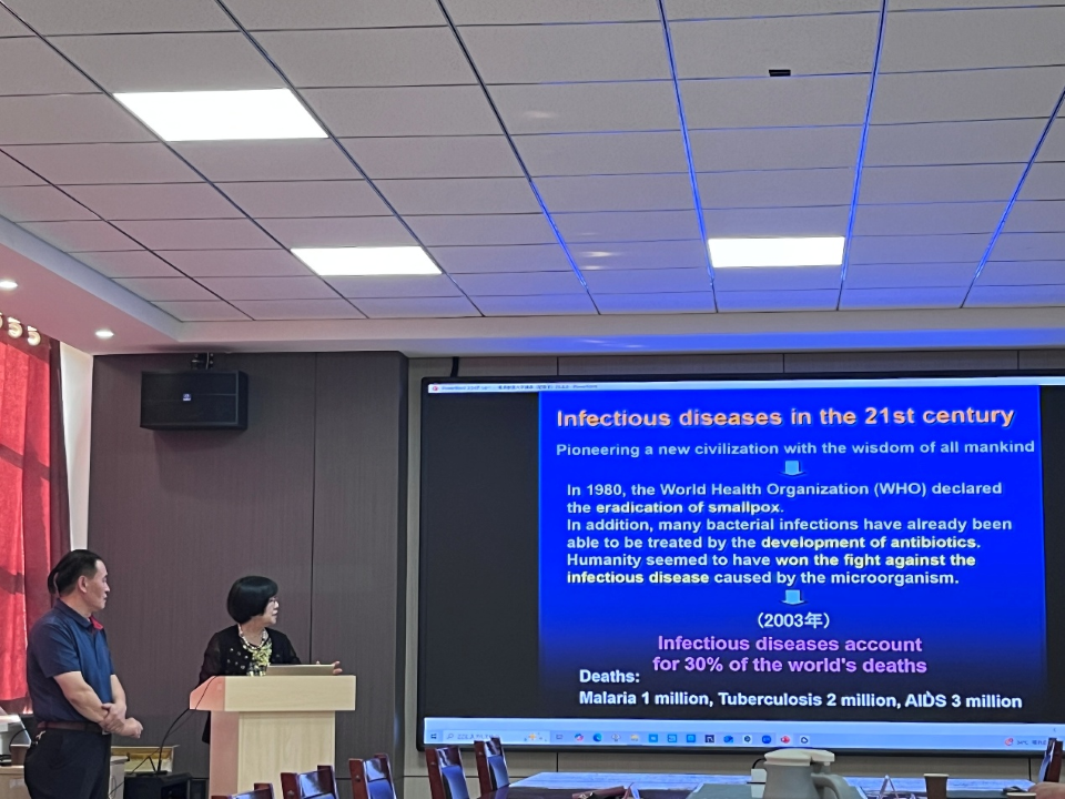 8月6日,williamhill中国邀请东京大学特聘教授间阳子到访学院开展交流,并以“Challenge for Infectious Diseases in the 21st Century”为主题作学术报告。国际合作交流处副处长王磊、山东绿都生物科技有限公司副董事长王学波、巴瑟斯未来农业科技学院党委书记刘焕奇教授、williamhill中国副院长韩先杰教授、邹明教授等出席活动。williamhill中国院长周顺教授主持会议并致欢迎词。