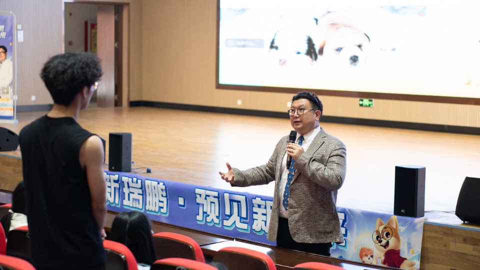 讲座中,魏仁生详细介绍了中国宠物医疗行业的发展现状,分析了当前面临的挑战和未来的发展趋势。他指出,随着人口结构变化、养宠家庭普及化以及年轻宠主占比攀升,人们更加注重宠物的生活质量,宠物医疗行业正迎来快速发展的时期。然而,行业的发展也面临着专业人才短缺、培养周期长、技术更新换代快、市场竞争激烈等挑战。他强调,好的工作=好的赛道+好的职业+好的平台,帮助同学们进一步明确自己的职业规划。李娇重点介绍,新瑞鹏宠物医疗集团将面向广大动物医学相关专业在校大学生开展专项人才培养,依托集团旗下教育平台知跃APP,将入职后的学习培养前置到在校学习阶段,针对性地帮助在校生补充见习兽医师助理理论课程,缩短入职后的成长周期。